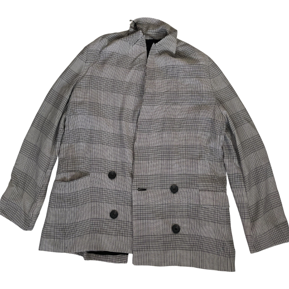 Blazer de cuadros en tonos gris y negro con doble abotonadura. Corte clásico y estructura relajada, perfecto para elevar cualquier outfit con un toque sofisticado y andrógino. 🖤🤍