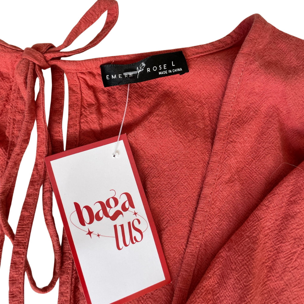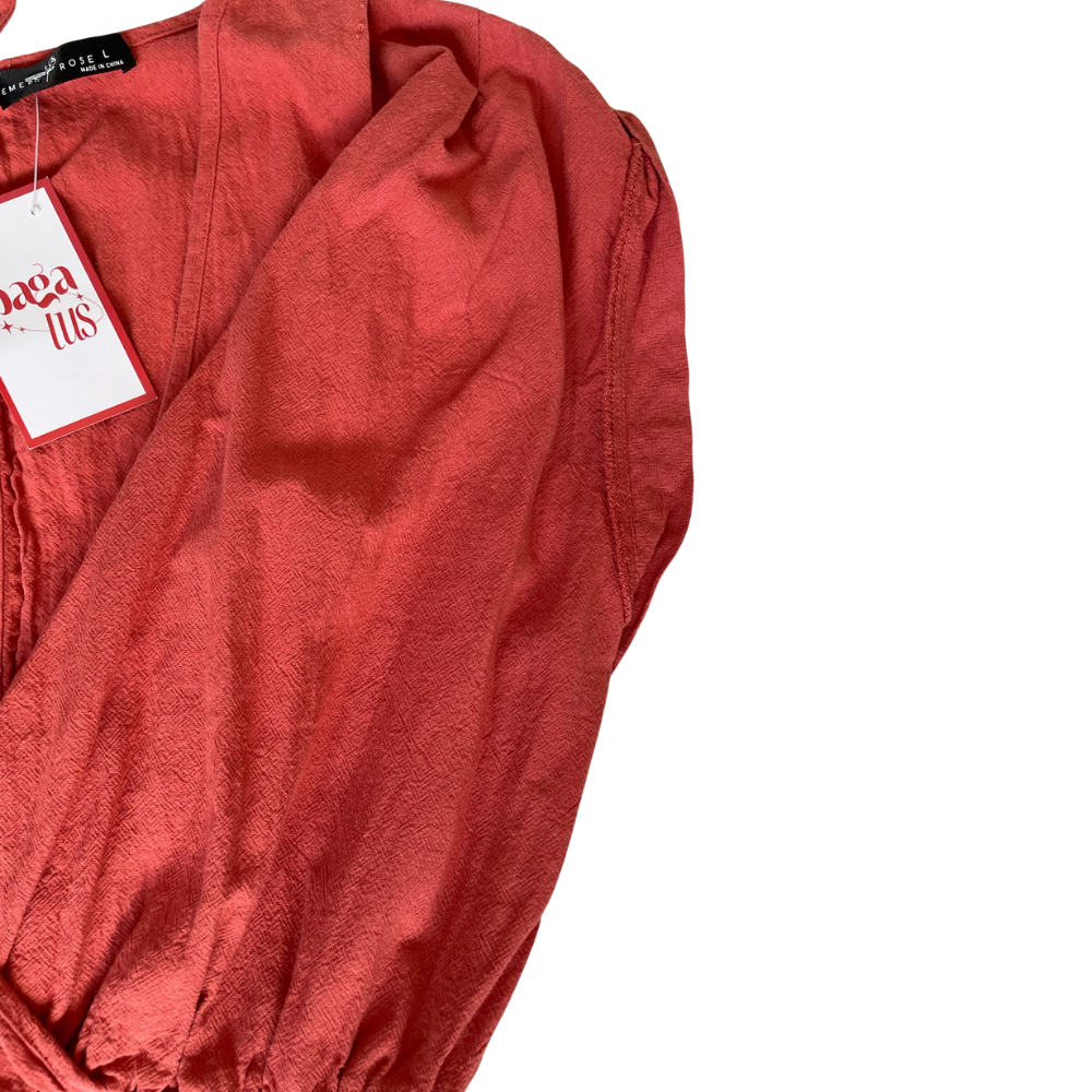 Color terracota con escote cruzado y lazo en la espalda. Tiene cintura elástica que acentúa la silueta y bolsillos laterales para mayor comodidad. Ideal para un look casual y fresco, perfecto para días de calor o planes de día. 🌺☀️