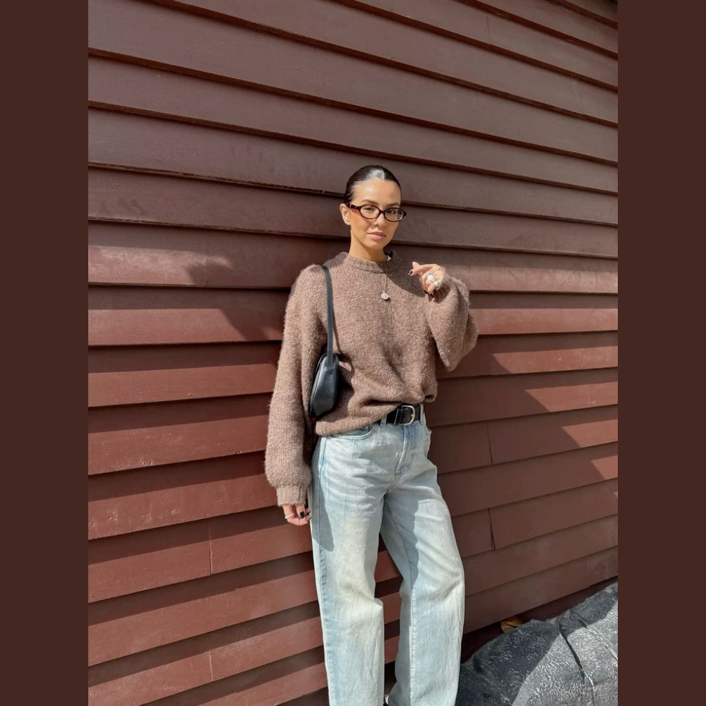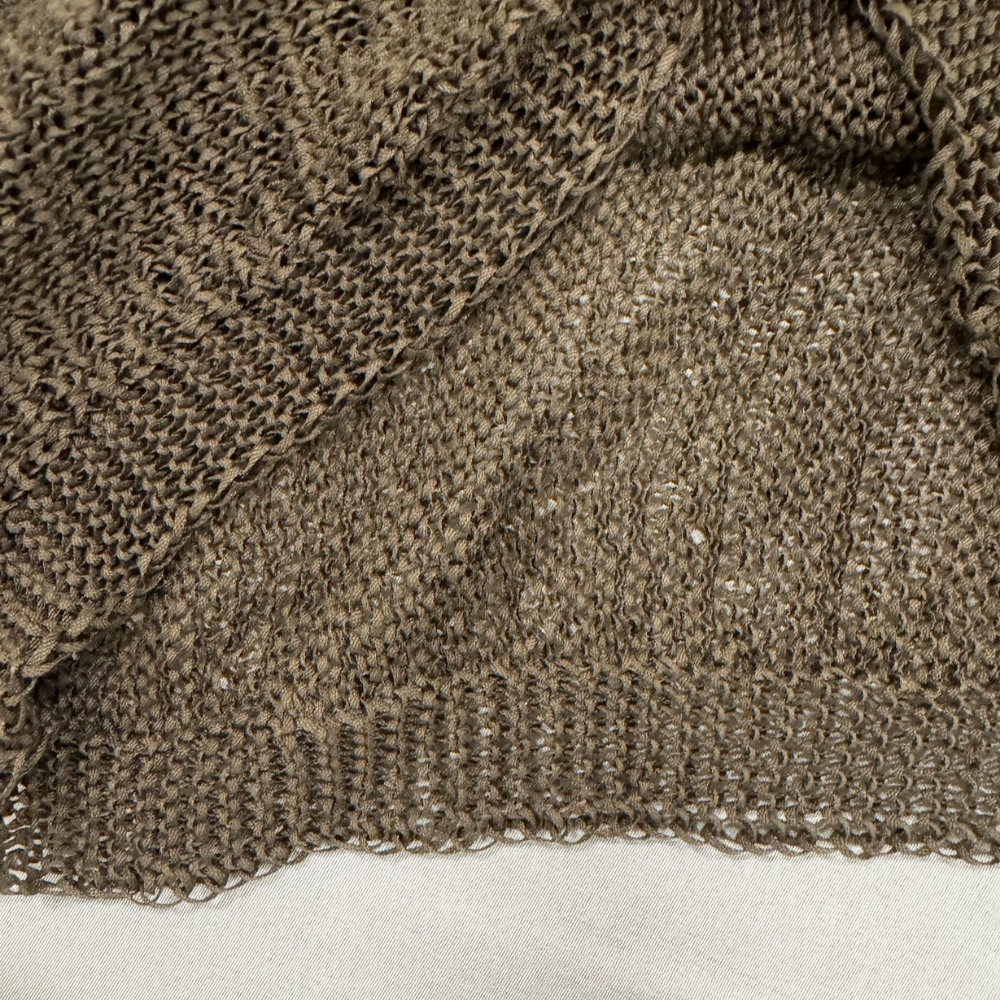 Suéter tejido de manga larga en tono café jaspeado con mezcla de fibras que aporta un efecto rústico y natural. Su diseño de punto abierto le da una caída ligera y relajada, ideal para entretiempo o para crear looks en capas. Presenta cuello redondeado amplio, silueta ligeramente holgada y puños y bajo acanalados que le dan estructura sin perder comodidad.