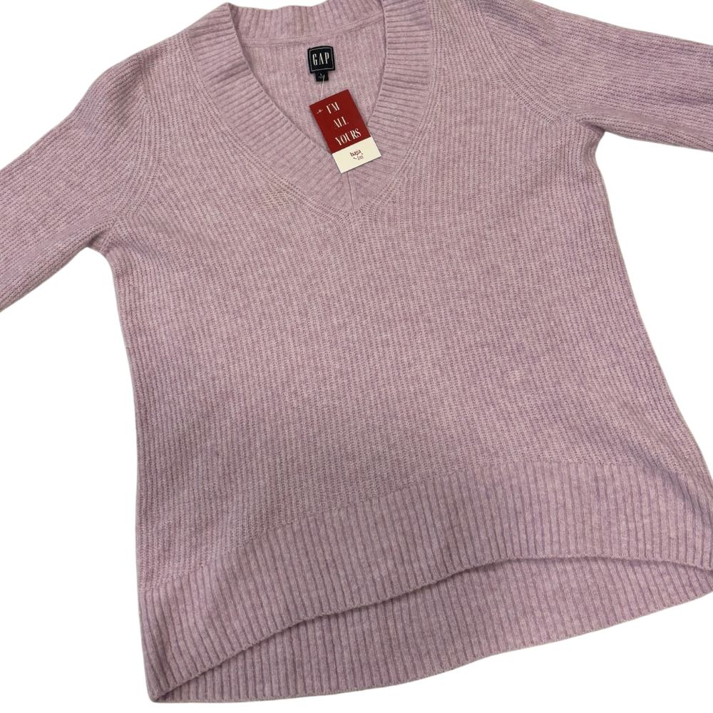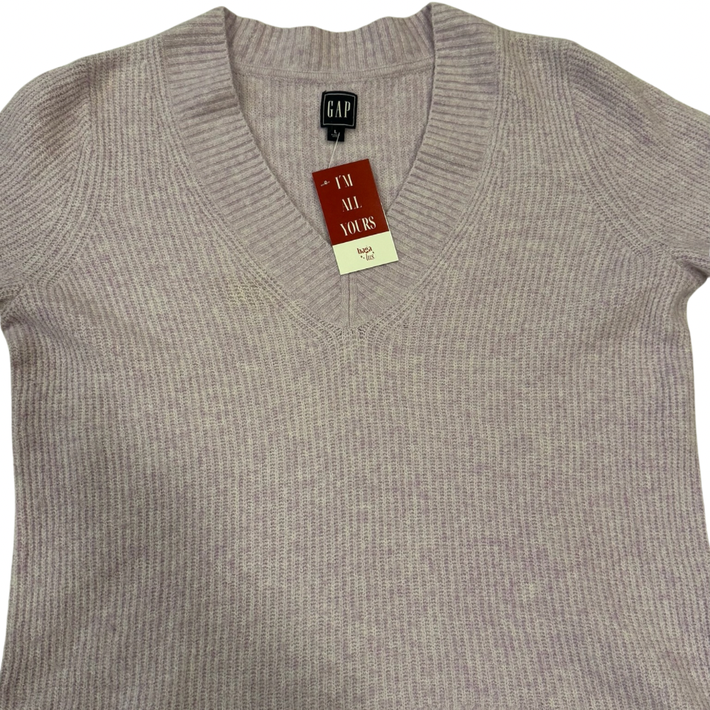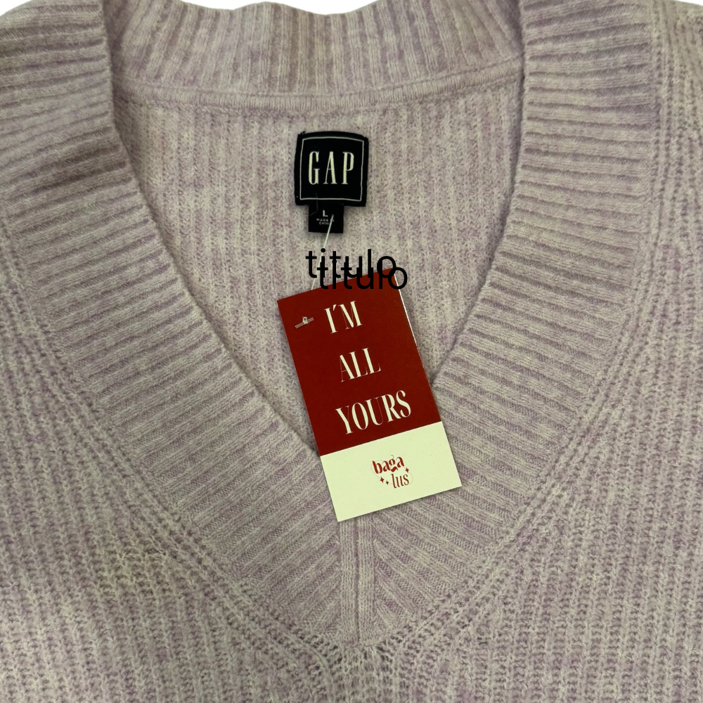 Suéter GAP en tono lila con escote en “V”. Tejido acanalado de tacto suave, perfecto para esos looks comfy pero con estilo. Una prenda versátil y atemporal que combina fácil.