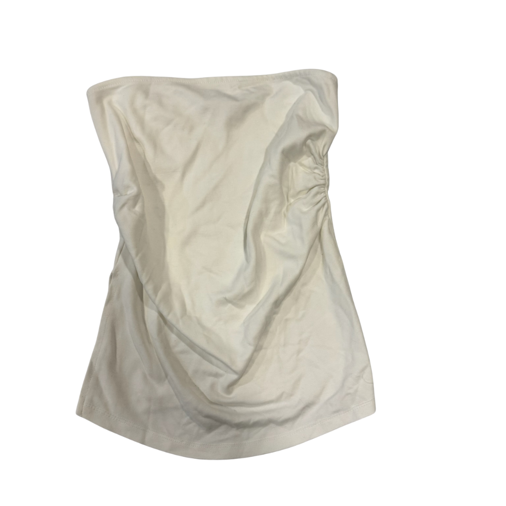Un básico que nunca falla 🤍. Top tipo tubo en color blanco, ajustado y con detalle fruncido lateral para un fit favorecedor.